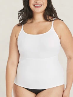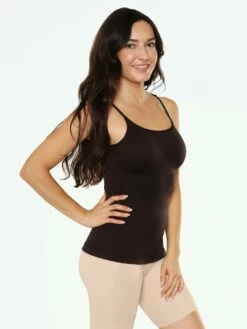 If you are ready to fall in love with your everyday wardrobe and shape, pull on this cami and start swooning. Designed with Fat Free Dressing technology, within seconds the tummy is tucked, the back is slimed, and the bust is naturally lifted. Also equipped with soft material and a length that minimizes roll-up, this cami is easy to wear under tops, jackets, dresses, or alone.