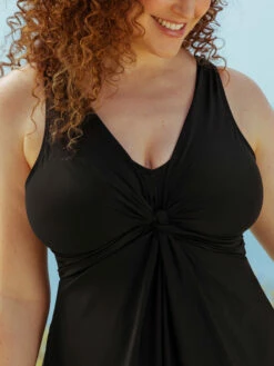 From beach days to a night out, the Shapermint Essentials Swim Knot-Front Swim Dress has you covered. This versatile and slimming swim dress for women features an empire waist overlay that minimizes your waist, and its twisted knot front enhances and flatters your bust.