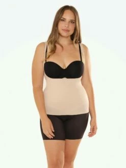 An open bust torso shaper, this tank top allows you to wear your own bra while also giving your bust a natural boost from below. Made with soft-on-the-skin, firm control fabric, the front and back panels tuck the tummy and smooth the back in seconds. Ideal for layering, the scoop back makes it great under all kinds of tops while the moderate width straps top slippage. Wear it and flaunt your curves proudly.